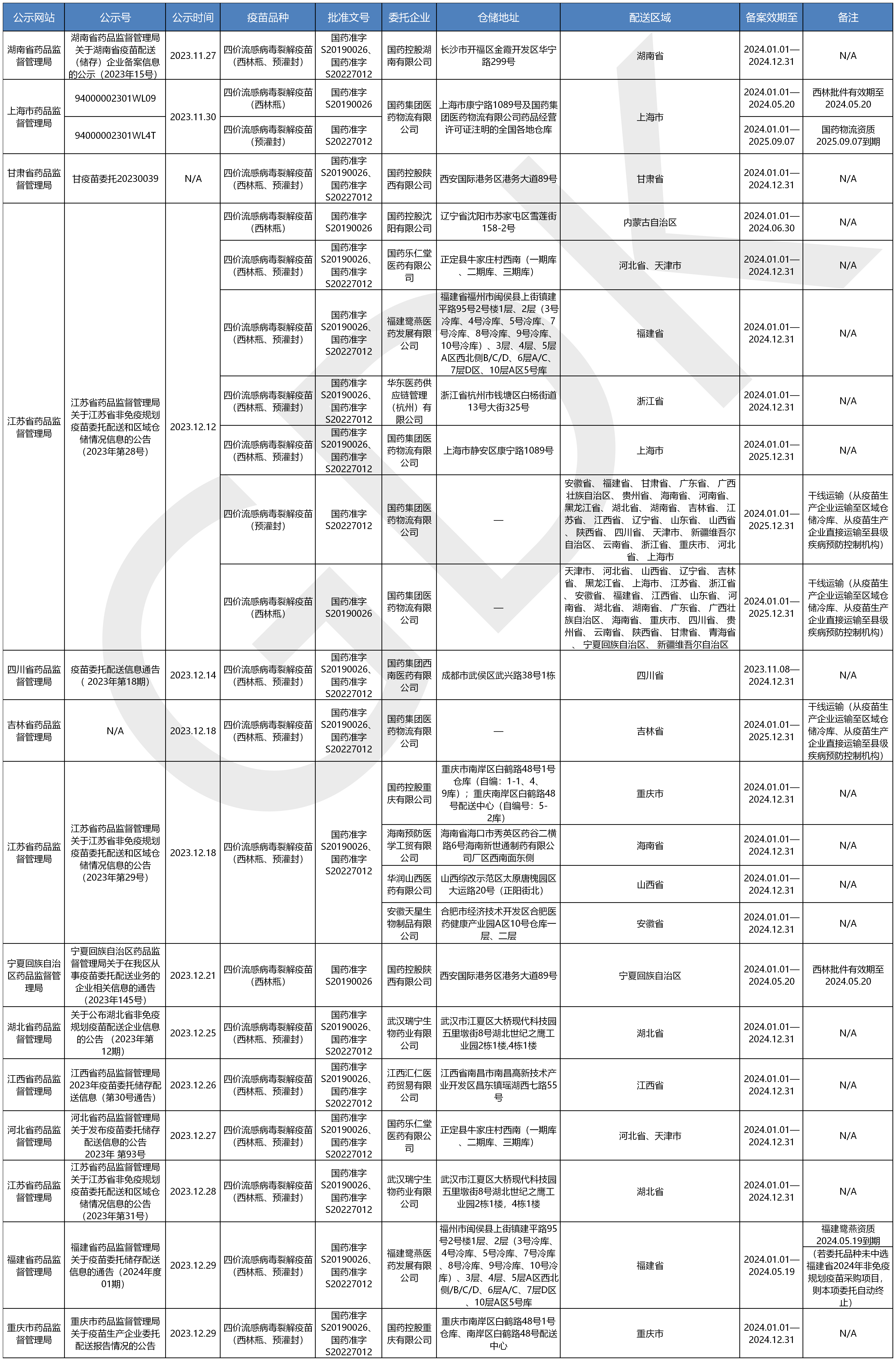 疫苗委托冷鏈儲存、配送企業(yè)信息公開(kāi)