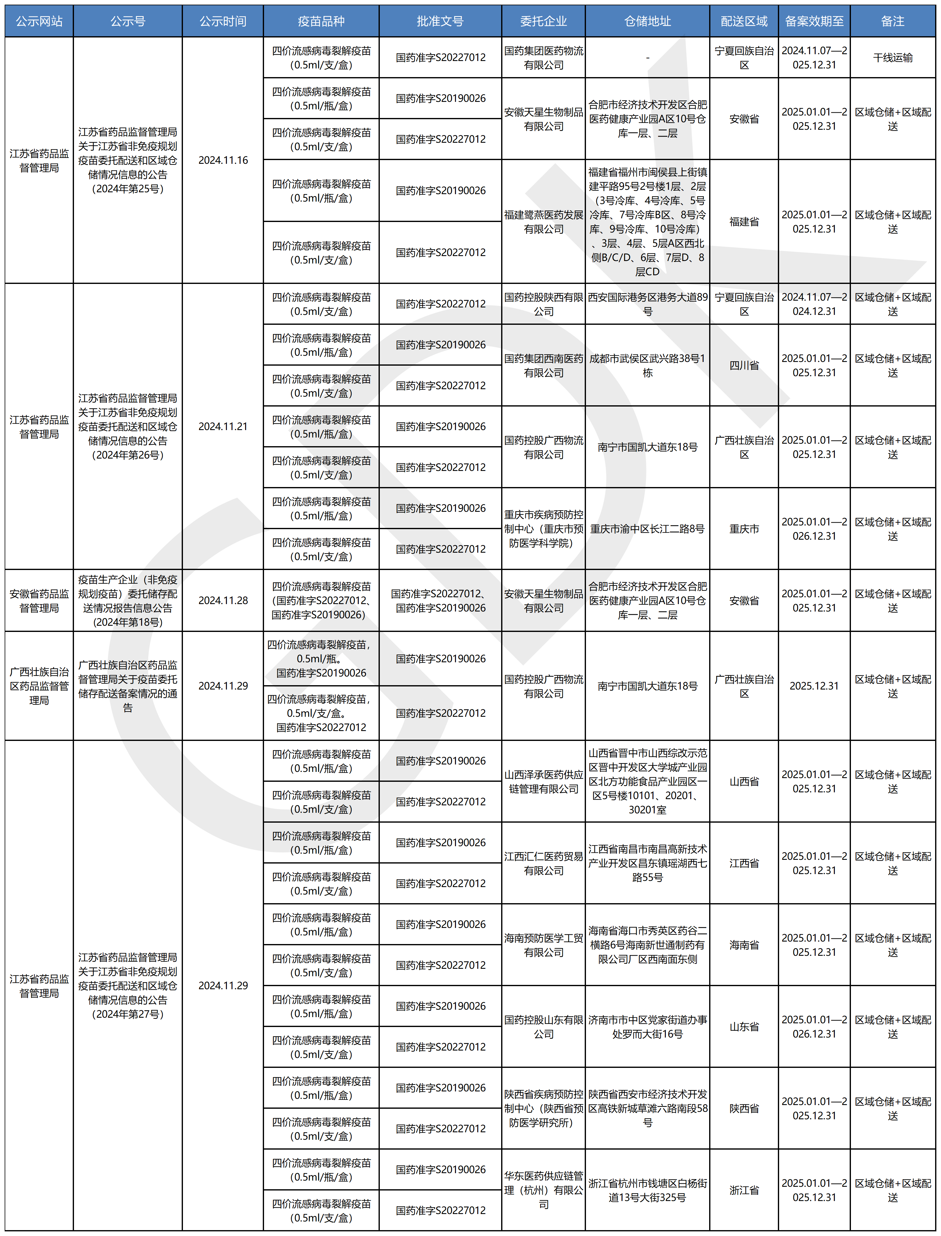 疫苗委托冷鏈儲存、配送企業(yè)信息公開(kāi)