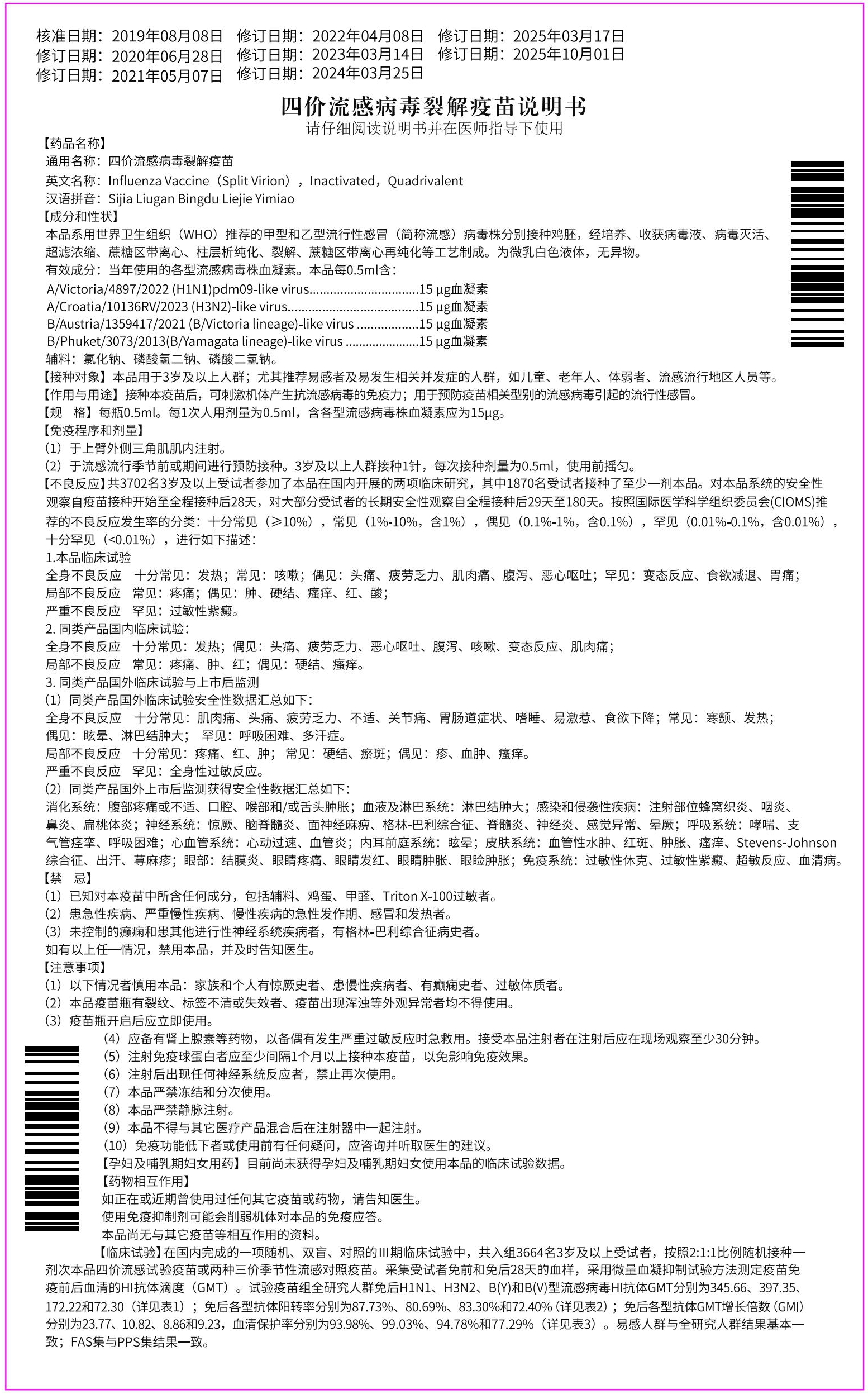 四價(jià)流感病毒裂解疫苗(0.5ml預灌封)