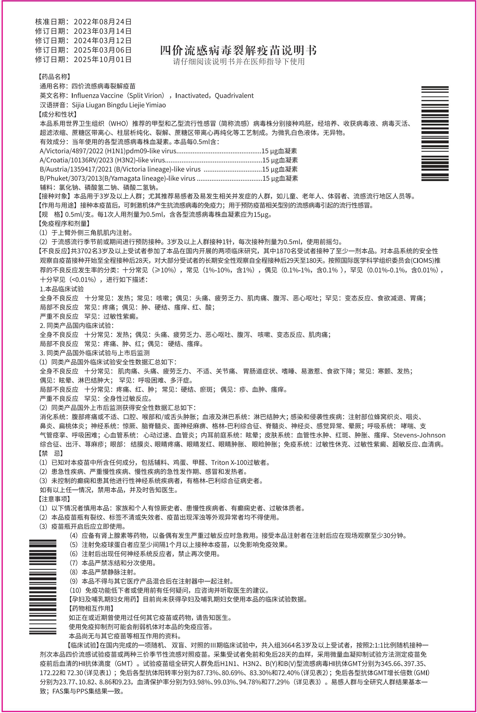 四價(jià)流感病毒裂解疫苗(0.5ml預灌封)